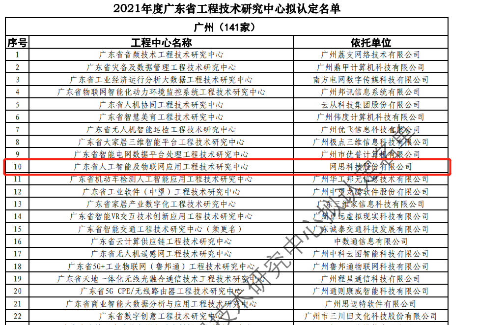 日前,广东省科技厅发布2021年度广东省工程技术研究中心名单。经过层层筛选、专家评审,依托开云电子竞技官方网站-KAIYUN ESPORTS,建设的“广东省人工智能及物联网应用工程技术研究中心”榜上有名。广东省工程技术研究中心主要依托省内行业、领域具有科技实力的、拥有一定规模以上创新型企业建设,部分依托高校和科研院所组建。工程中心旨在